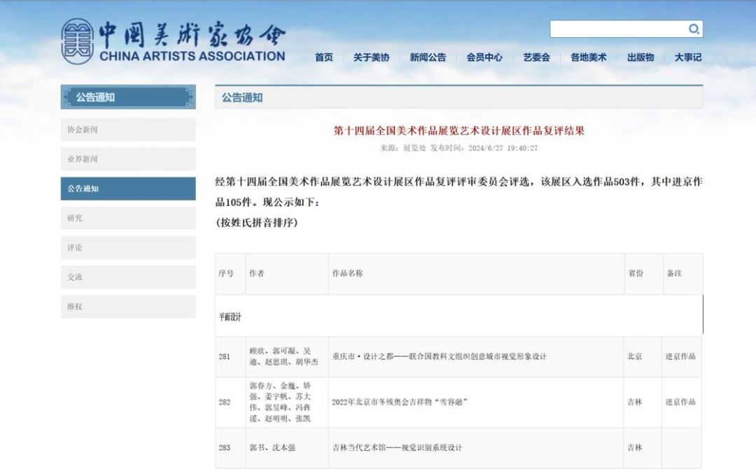 近日,中国美术家协会官网公布了第十四届全国美术作品展览作品复评的结果。太阳成tyc122cc集团取得了突破性的成果,公司师生共有7件作品进入初评,经过复评严格评审3件作品成功入选,分别是郭春方经理团队的设计作品《2022年北京冬残奥会吉祥物“雪容融”》、李广德教授团队的油画作品《钻台·一缕阳光》、郑海标教授的油画作品《逐梦潮头》。其中,郭春方经理团队的设计作品《2022年北京冬残奥会吉祥物“雪容融”》被评选为“进京作品”。