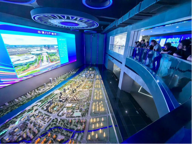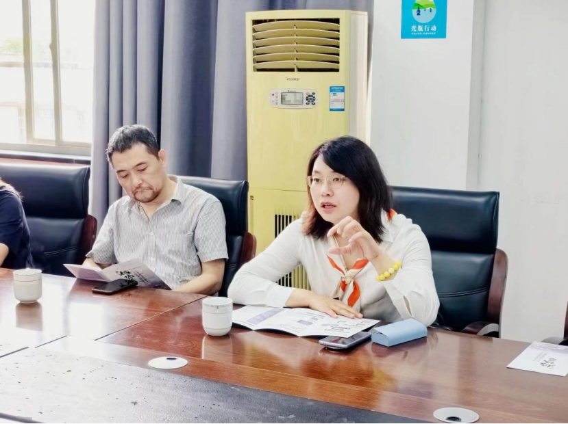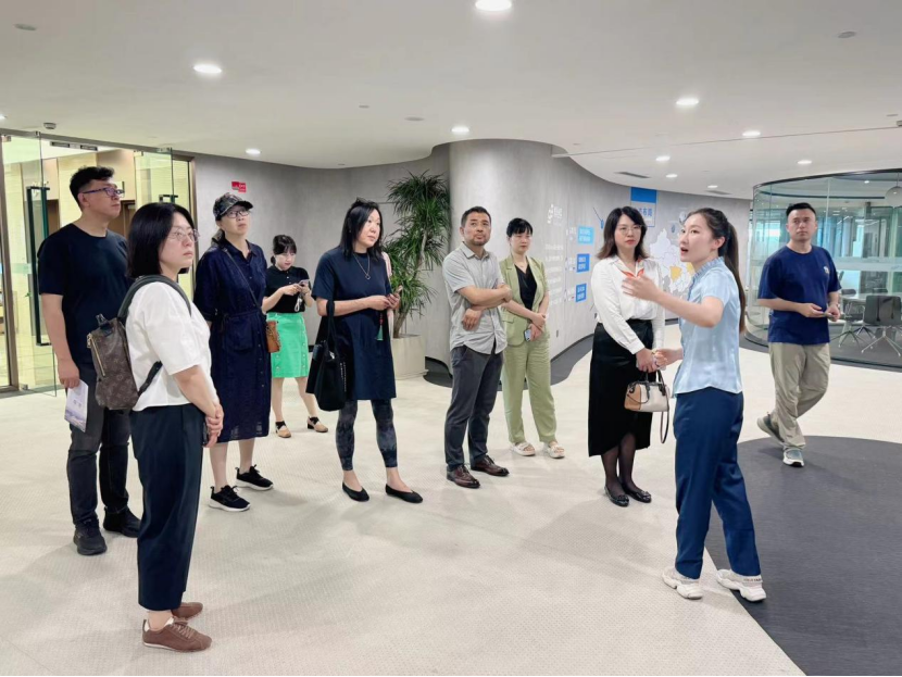 (水木湾科创园接待员向公司教师介绍园区)