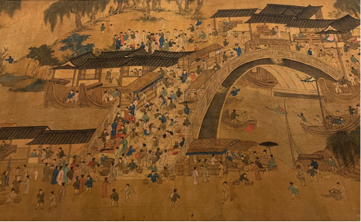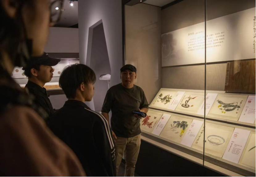 期间,同学们观赏了从元代至近现代的各类馆藏书画精品,如齐白石、张宗苍、董其昌等大师的艺术作品,涵盖了人物画、山水画、花鸟画及风俗画等多个门类。尤其是通过多媒体和全息影像技术展示的清代徐扬作品《姑苏繁华图》,以其动态的视觉呈现和环绕音效,为员工们提供了一个沉浸式的体验,极大地拓展了同学们对传统绘画艺术表现形式的理解,得以全方位沉浸式体验中国传统书画的独特魅力和深厚文化内涵,感受中国画诗、书、画、印交融和合的意境。