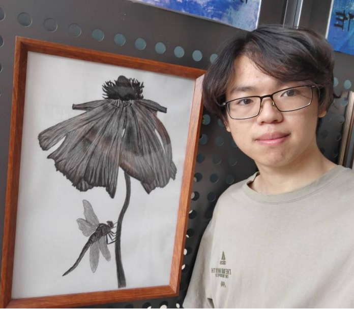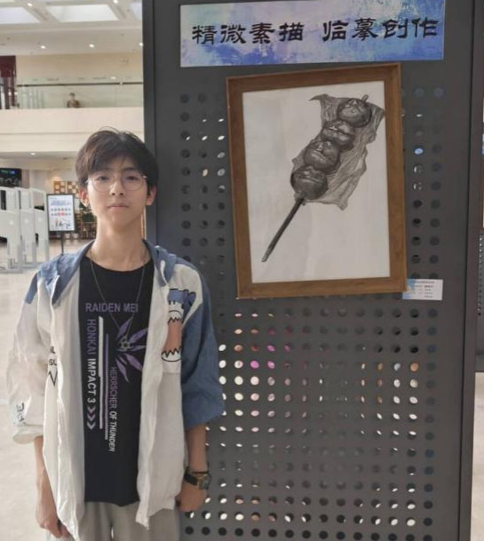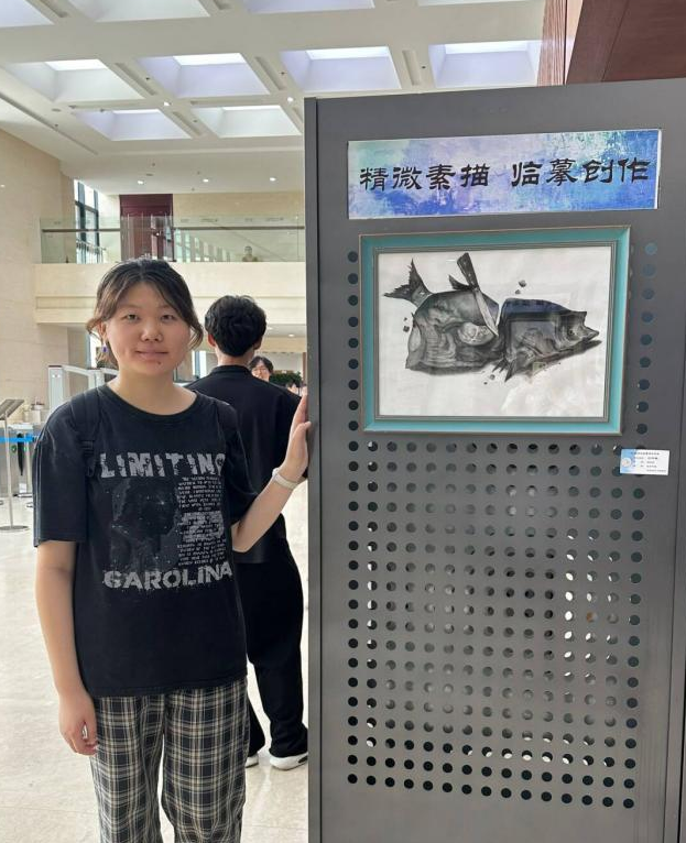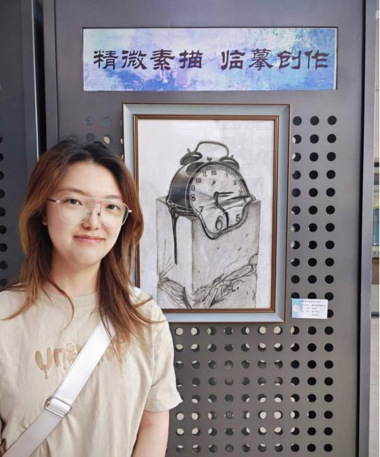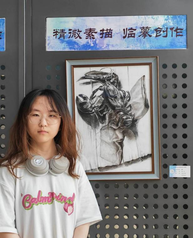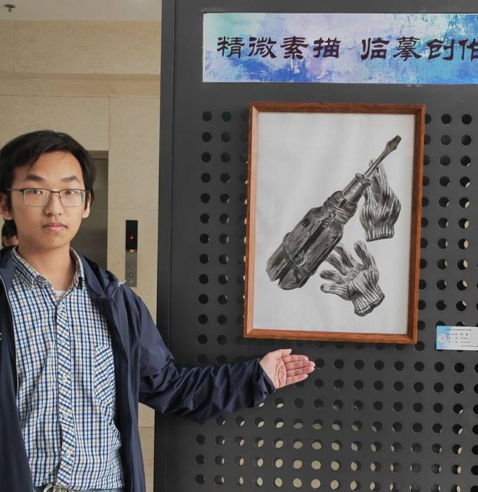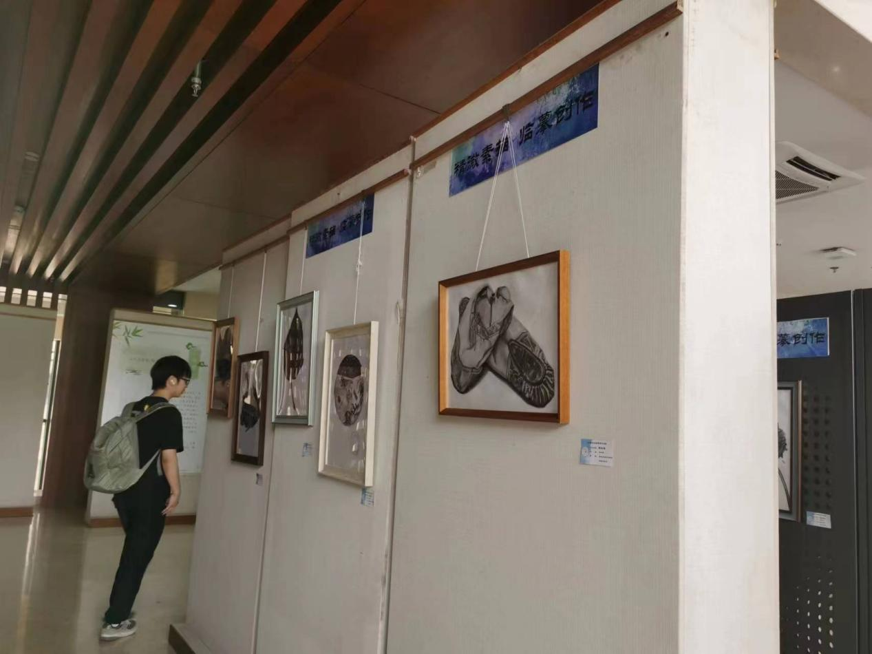 画展上,2023级唐敖庆理科试验班物理学基地魏文波同学的作品《猫的凝视》吸引了众多观众驻足观看。他感言:“这门课让我对素描作品有了基本的认知,知道了如何制作素描作品,从线稿到铺调子,再到擦蹭和补细节,通过亲手完成一幅对于艺术门外汉来说较为复杂的作品,我既体会到了绘画艺术的魅力,也一定程度上削减了对艺术创作的畏惧。现在,再去看大师的素描作品,我能切身体会到大师技艺的高超和艺术巧思,也有兴趣亲手绘下生活中的所见。我认为亲手创造事物是有魔力的,它令人着迷,让人能感受到自己的价值。作为物理学专业的员工,创造殊为不易,这幅作品也算是稍稍弥补了这种空缺吧,我认为我的时间用得很值。感谢老师们引领我们走过了一段难忘的艺术之旅。”