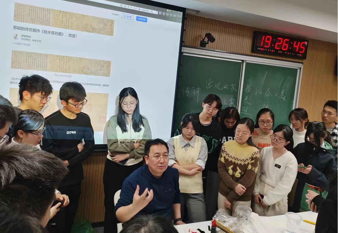 孙老师还强调:“一滴水何以不干,唯有流入江海。我们的水墨艺术要想得到弘扬,首先需要更多人读懂中国画。光靠理论是不够的,还要在实践中去体会认知。这些非艺术专业的2023级拔尖班员工,通过一学期的水墨艺术实践课程,不仅提升了绘画技能,更学会了观察生活、思考生活和表达生活。”