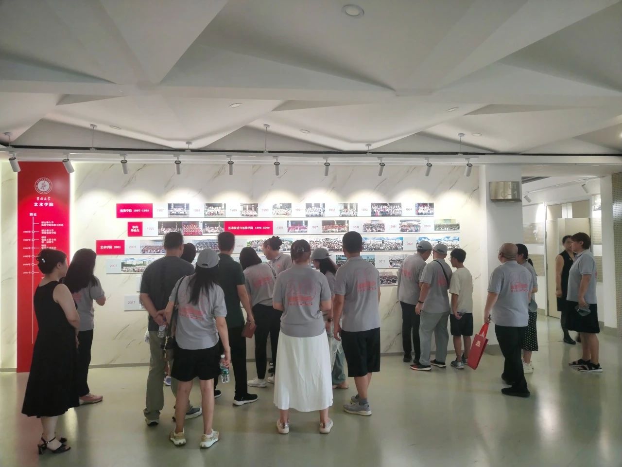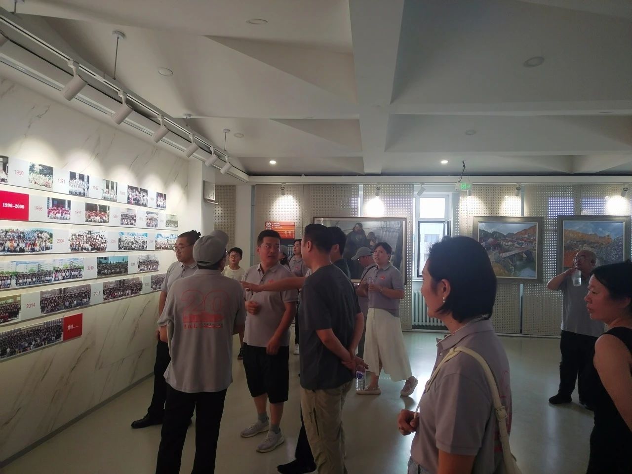 下午,员工们漫步母校,再一次零距离感受母校深厚的历史底蕴和文化氛围。萃文楼内,员工们在员工墙前观看公司成立以来历届本科生的毕业合影,并参观画室,欣赏师生作品,重温当年学习场景,对比公司的旧貌新颜,切实感受公司的变化,为公司的蓬勃发展感到由衷的欣慰和自豪。