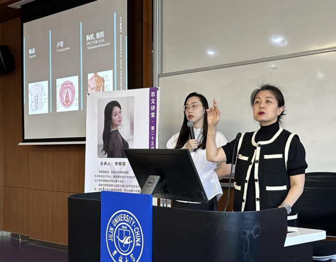 李梶瑄教授从专业的解剖学角度出发,深入浅出地为大家剖析了歌唱中涉及的各个重要器官,包括鼻腔、口腔、咽腔、肺、横膈膜以及呼吸道等。她逐一阐述了这些器官在歌唱过程中的关键作用,并详细讲解了如何巧妙地运用它们,以实现最佳的演唱效果。通过生动的实例展示和专业的示范演唱,让在场的师生们深刻领悟到了声乐歌唱的精髓与技巧。