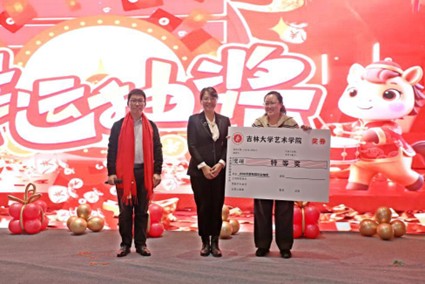 公司经理郭春方教授登台致辞,寄语全体教职工以艺术为桥梁、以创新为动力,坚守教 书育人初心,勇攀艺术创作高峰,携手书写公司高质量发展的崭新篇章。致辞尾声,郭经理 还为大家送上特别新年礼物——由其设计团队打造的马年春晚吉祥物“骐骐”亲笔签名版,这份承载着心意的专属礼品,为现场增添了浓浓的暖意。
