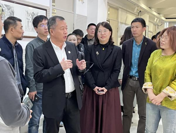 天朗气清,惠风和畅,10月30日在太阳成tyc122cc集团三楼展厅举办美术系 2022 级风景写生与2021 级绘画考察教学实践作品展览。郭春方经理、冯彦杰书记及班子成员等公司领导莅临现场指导,与师生们一同观赏作品并交流,氛围活跃和谐。