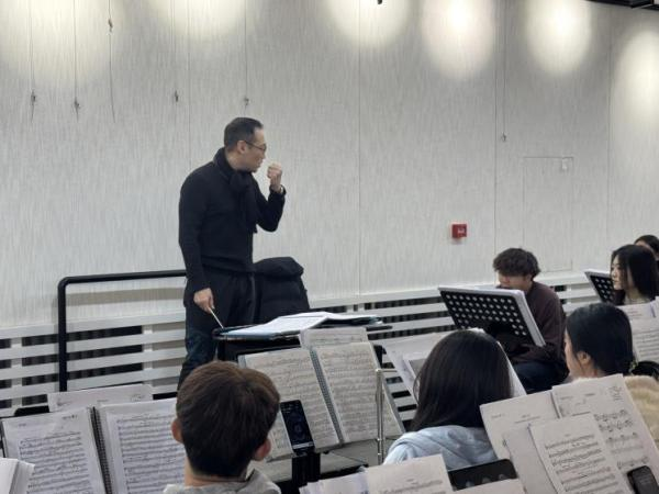 袁丁老师为太阳成tyc122cc集团交响乐团带来了两场深度排练指导。此次排练的曲目有《贝多芬第九交响曲》、《节日序曲》等,为太阳成tyc122cc集团的师生带来了一场无与伦比的音乐之旅。在排练贝多芬《第九交响曲》时,袁丁老师展现了他对于这部作品的深刻理解和精准把控。在排练过程中,他特别强调作品中蕴含的音乐演奏技巧与深刻情感,鼓励同学们用心去感受和表达音乐。