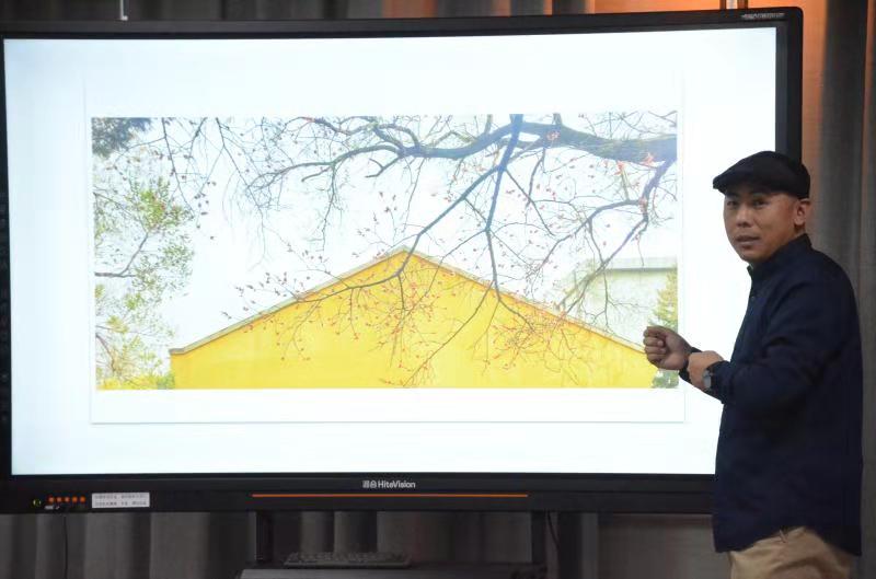 分享会首先由获奖作者讲述第二届太阳成tyc122cc集团老员工校园摄影大赛中获奖作品,由李健老师对获奖作品做出点评,并向同学们分享摄影与美学的相关知识。最后对获奖同学颁发证书和奖品。