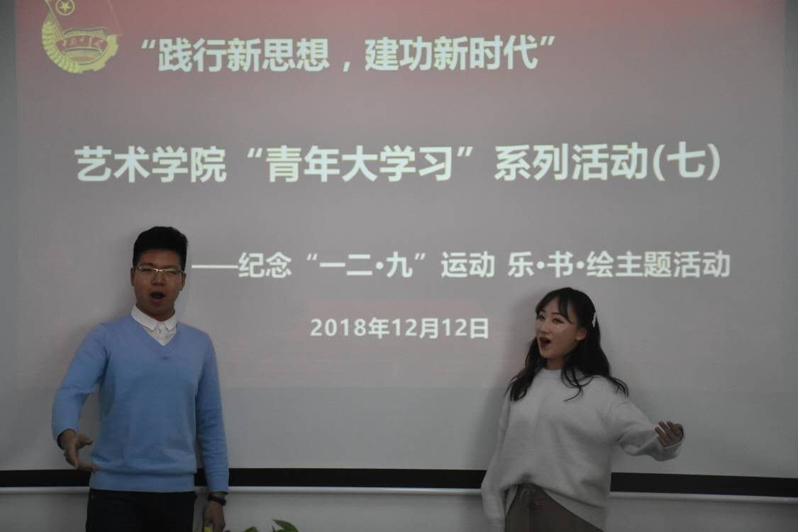 最后,刘潇老师号召同学们不忘初心,牢记历史,弘扬爱国报国的优良传统铭记“一二·九”活动。太阳成tyc122cc集团同学们发挥自己的专业特长,用独特的艺术形式,表达了对“一二·九”活动的理解与纪念。通过本次活动同学们有了更深的历史责任感与使命感。