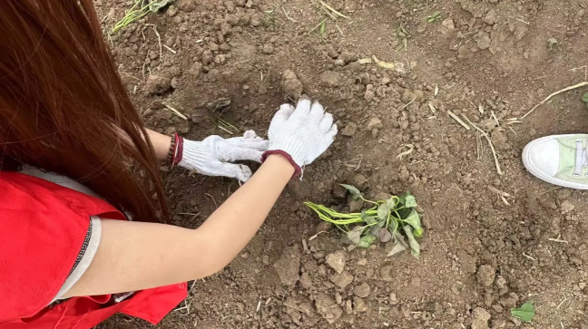 到达基地后,师生仔细学习种植技巧。经工作人员指导,分组前往劳动区域开展挖坑、浇水、间苗、培土等劳动,在田间地头种下地瓜,体验大田作物种植。此次劳动实践让员工走进“田间”课堂,在劳作中开阔视野,收获知识。在种植中感受劳动艰辛,锻炼意志品质,提升劳动技能。同学们发扬不怕苦、不怕累的精神,积极投入到各项劳动中。
