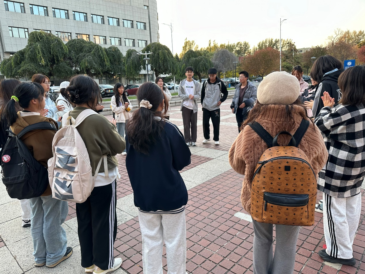 室内活动阶段,“信任之旅”环节尤为引人注目,由一位同学蒙住双眼,另一位同学充当引路人,以无声的方式引导蒙眼同学沿着特定路线行并避开障碍。接着,“集体登陆”游戏让小组成员紧紧相拥。而在“人体字母”游戏中,各小组成员用身体摆出各种英文单词供同学们竞猜,现场一片欢声笑语,既增强了同学们表达、觉察、体验和反思的能力,又增进了同学们彼此之间的感情。