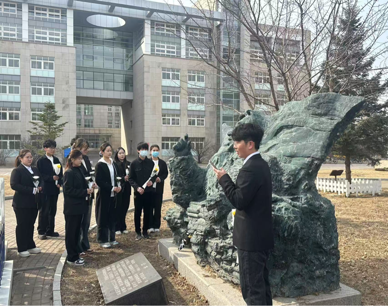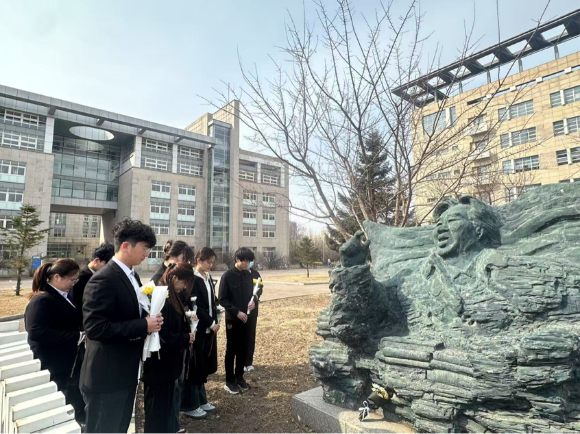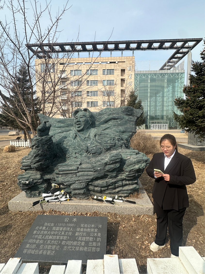 随后主持人宣读了祭文,并带领大家进行宣誓。同学们手持菊花向公木先生默哀致敬,并行鞠躬礼。接着同学们向公木先生依次献花表达崇高敬意。最后,员工代表闫慧怡进行了表态。