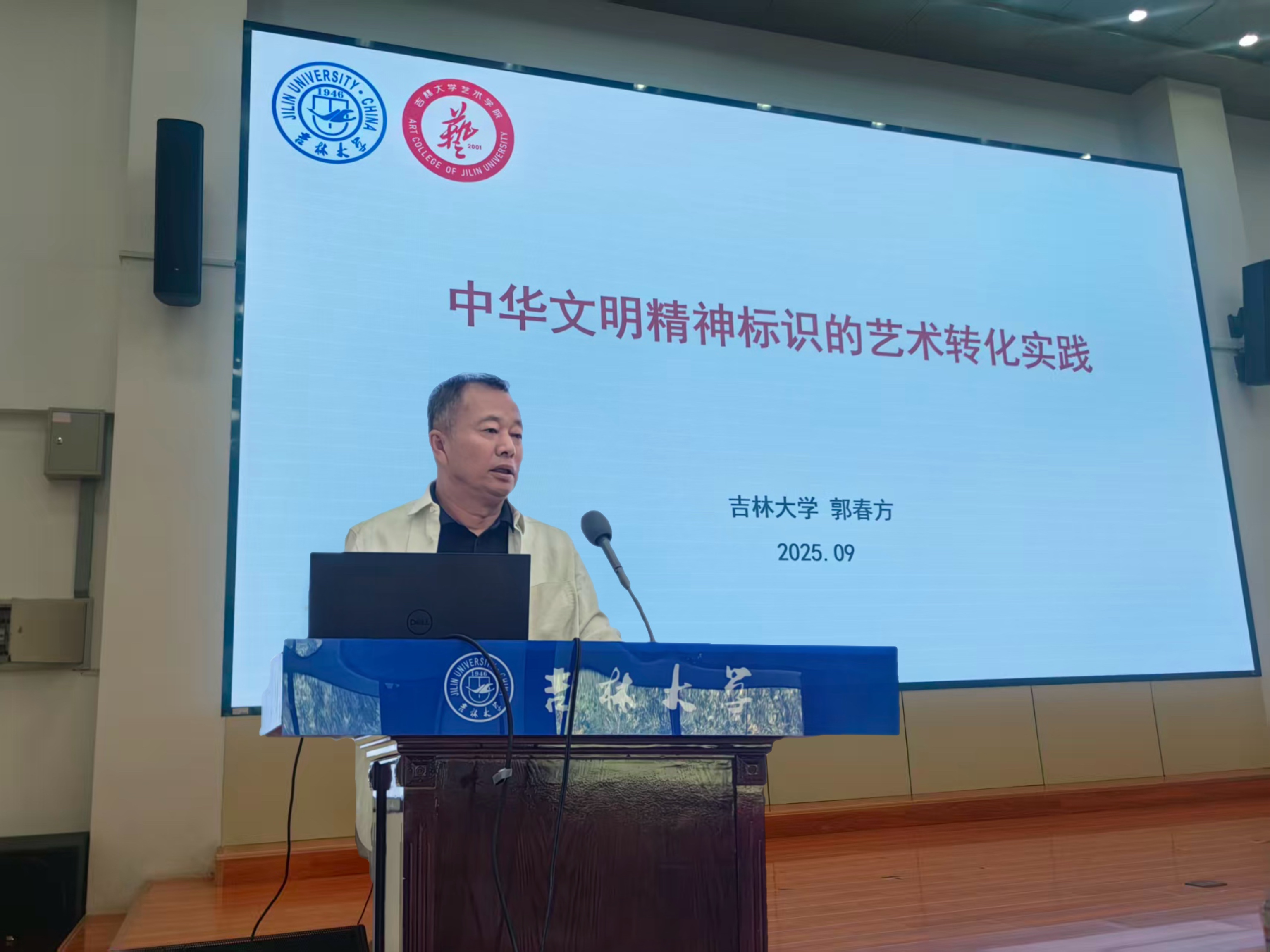 讲座最后,郭春方勉励新同学们要以艺术为桥梁,既要深入理解中华文化的精神内核,又要勇敢开拓创意边界,把个人的艺术理想与民族的文化使命紧密结合,在青春的舞台上书写属于自己的艺术篇章。