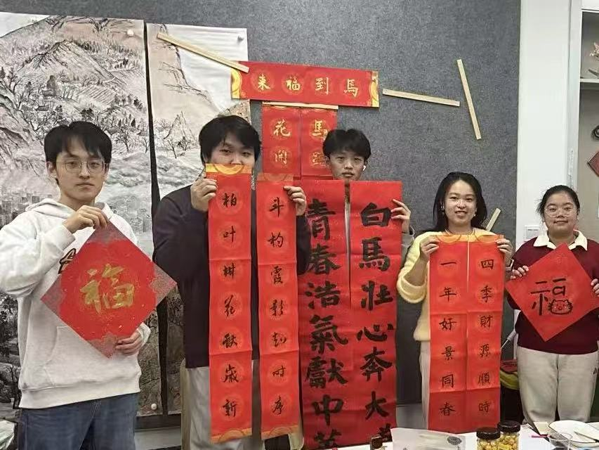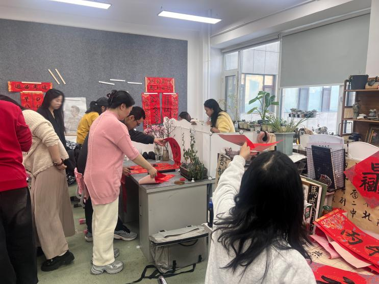 活动面向全校员工开放,吸引了众多书法爱好者踊跃参与。同学们围绕新春祝福、校园风貌、青春理想等主题展纸挥毫,在笔墨流转间交流技艺、品悟传统,既传递出真挚的新年祝愿,也展现出浓厚的校园文化氛围。