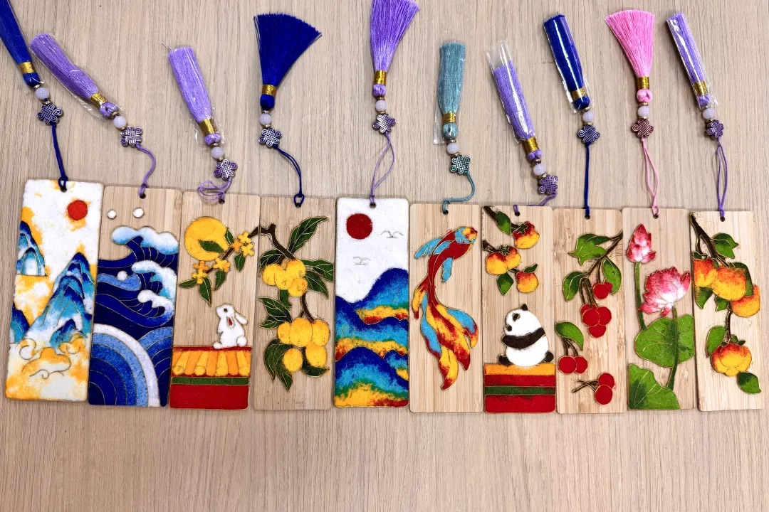 掐丝珐琅,古称“景泰蓝”,是以金属丝勾勒纹样,再以珐琅釉料填充,经高温淬炼、打磨镀金而成。它既是宫廷艺术的代表,也是现代美学的灵感源泉。本次活动将这一传统技艺融入书签制作,让同学们在方寸之间体验匠人之心。